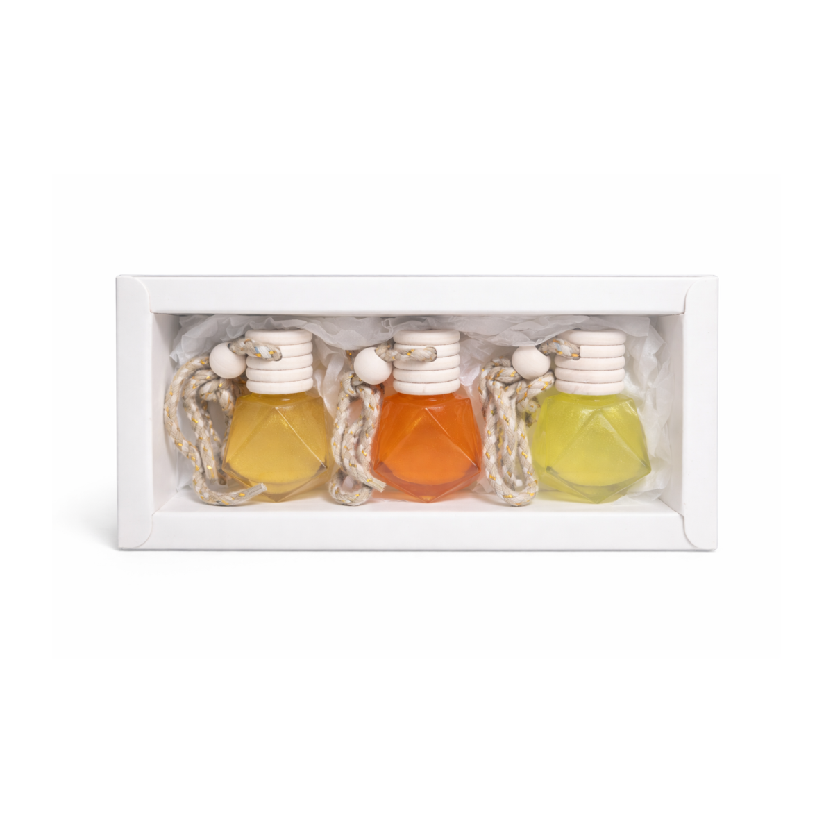 Composé de trois diffuseurs aux fragrances lumineuses et ensoleillées,